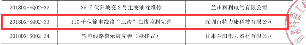 我司中標國網甘肅定西電力供電公司33號標包